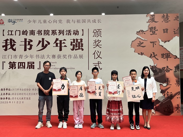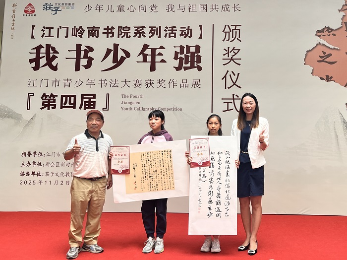 11月2日下午,第四届“我书少年强”江门市青少年书法大赛颁奖仪式在新会区美术馆举行。