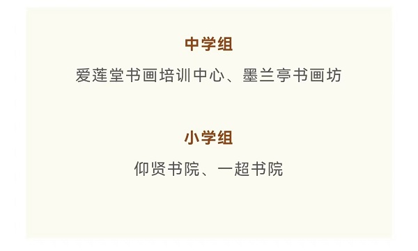 中学组:爱莲堂书画培训中心、墨兰亭书画坊