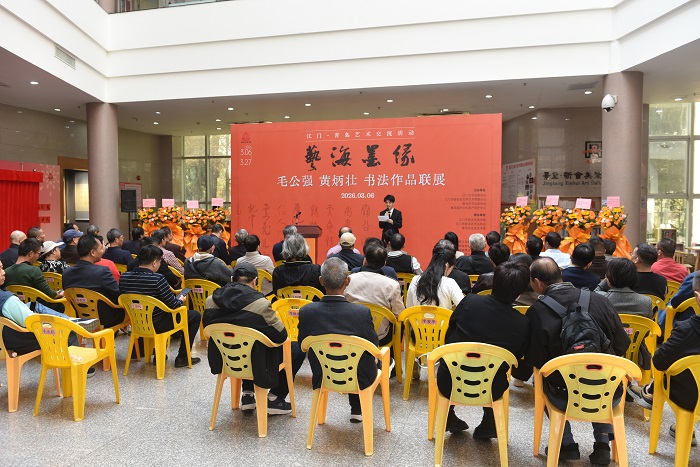 3月6日,江门·青岛艺术交流活动——“艺海墨缘”毛公强、黄炳壮书法作品联展在新会区美术馆正式开幕。来自江门、青岛两地文化界、书法界的嘉宾,以及广大书法爱好者齐聚一堂,共同见证展览启幕。