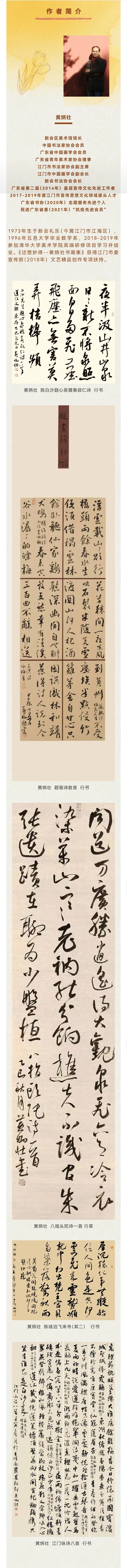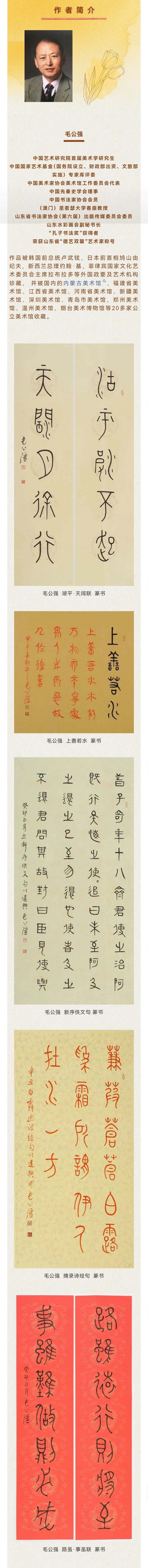 联展共展出82件书法作品。其中,青岛市美术馆研究馆员、中国书法家协会会员毛公强有篆隶作品47件展出,新会区美术馆馆长、中国书法家协会会员黄炳壮有行草作品35件展出。