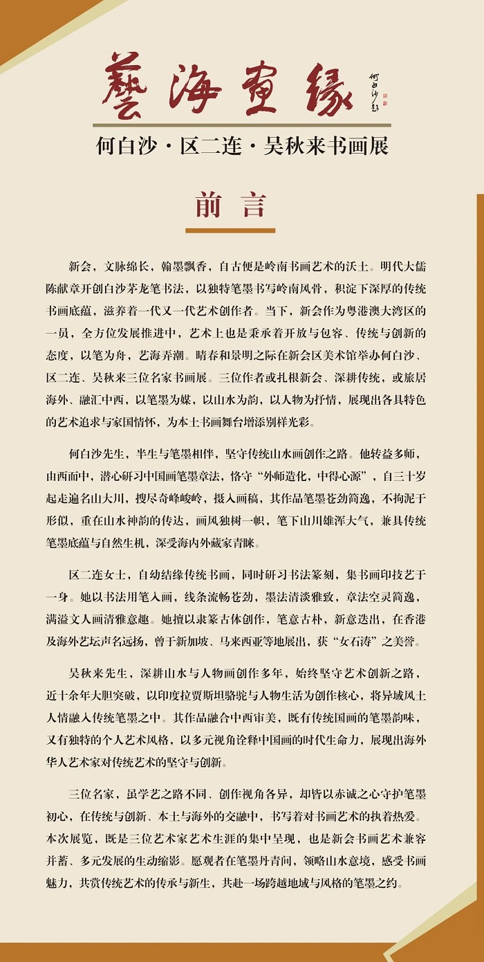 “艺海画缘——何白沙·区二连·吴秋来书画展”在新会区美术馆开幕!